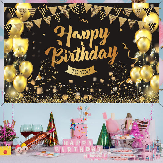 Black Gold Birthday Background Flag Decoration