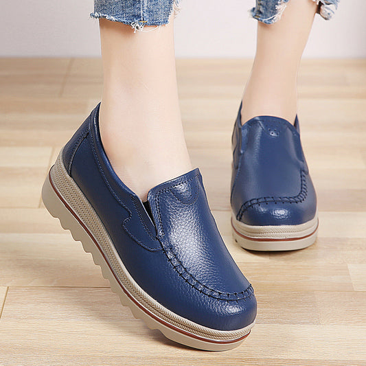 Women's Leather Slope-Heeled Casual Thick Roman Sandals